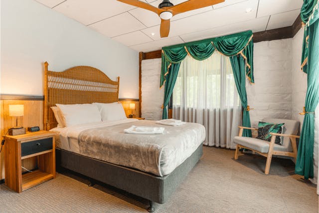 Myrtle Loft is a spacious open-plan layout, created for wedding preparations and romantic getaways. Two additional bedrooms provide a queen and a bunk-sized bed, making it a favourite to plan a family or small group favourite. The compact size and cosy lighting set-up ensure that it is one of the most welcoming Dandenong Ranges cottages.